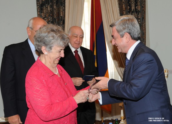 Президент Серж Саркисян принял сегодня делегацию Армянского благотворительного всеобщего союза во главе председателя АБВС Перча Седракяна.